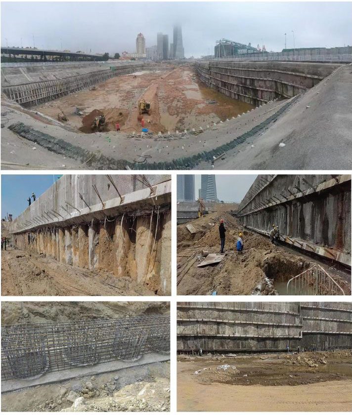 青島國際郵輪母港區啟動區地下道路及基礎設施土石方開挖及基坑支護工程,場區位于青島市市北區新冠路以西、郵輪母港路以北、位于青島港港區內。基坑開挖深度為12.00-22.0米、周長約2300米。本工程采用TRD水泥土墻、咬合樁為止水帷幕;主要采用排樁+錨桿、復合土釘墻、坡率法、內支撐等支護體系。